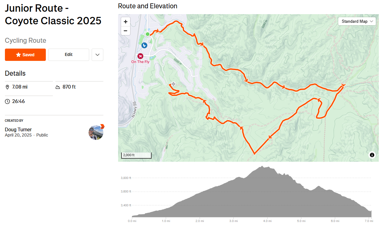 Jr Course: One Lap, 7 miles, 870 Feet of Elevation
